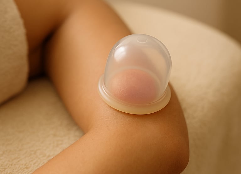 Dry cupping is a therapeutic technique that uses suction cups to lift the skin and underlying tissues. Unlike wet cupping, no incisions or blood removal are involved. Instead, the suction alone is used to relax muscles, improve circulation, and release tension.